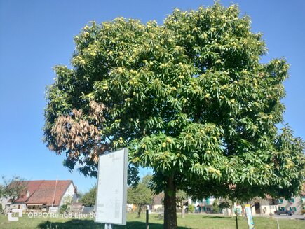 En effet, le châtaignier, arbre planté pour la postérité avec une urne, en avril 1999 par