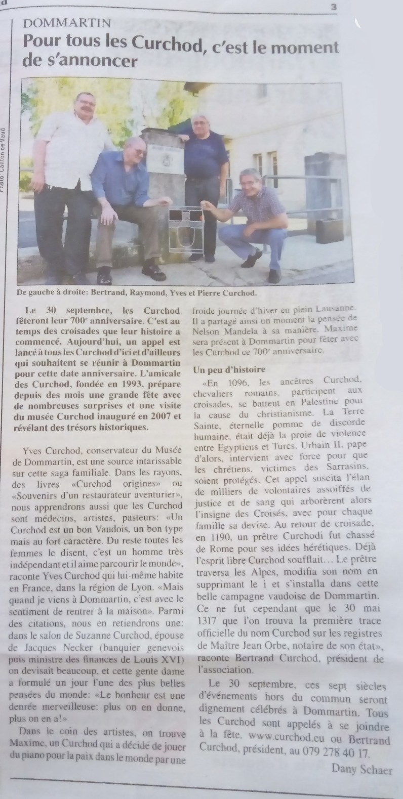 A l'occasion de la rencontre 2013 le journal Le Gros deVaud a publié en page 11 l'article ci- après avec une belle et grande photo.